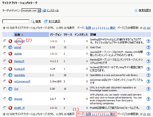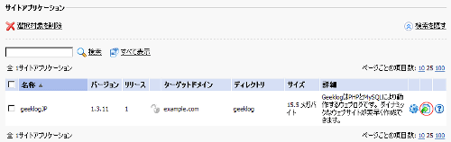 (1)を利用してサイトアプリケーションパッケージの名前がGeeklogJPとある項目を探します。