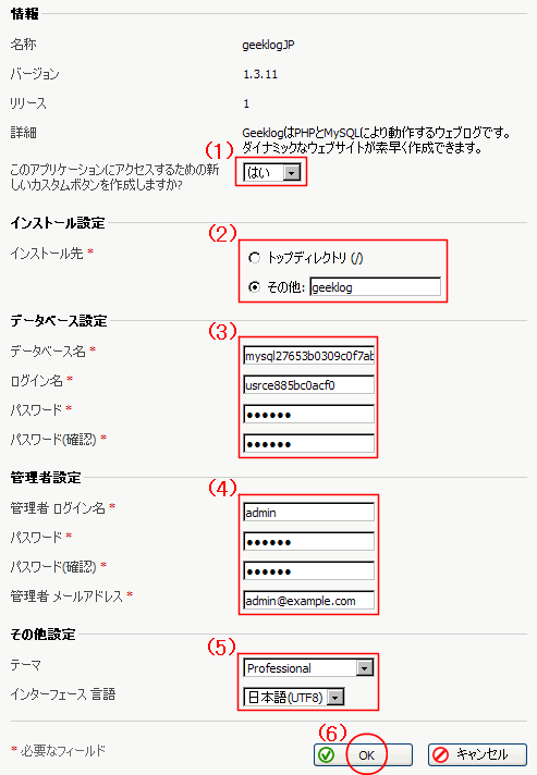 (簡単インストール機能を利用してGeeklogを導入された場合別途利用料金が発生しますので、ご理解の上選択下さい)