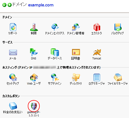 ログイン後のPleskコントロールパネルのメイン画面にこのようなアイコンが追加されます。