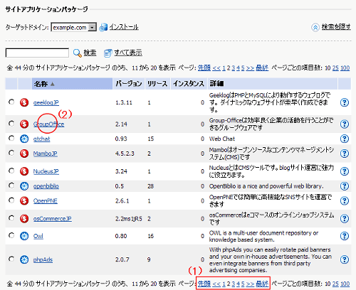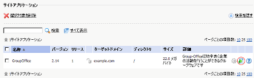 (1)を利用してサイトアプリケーションパッケージの名前がGroupOfficeとある項目を探します。