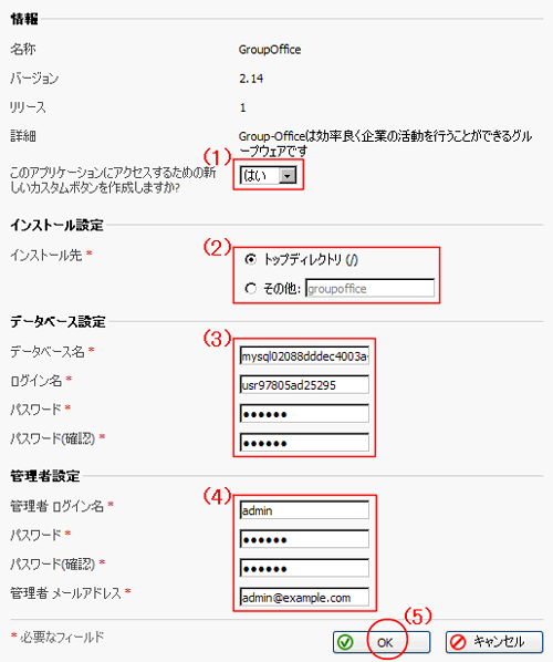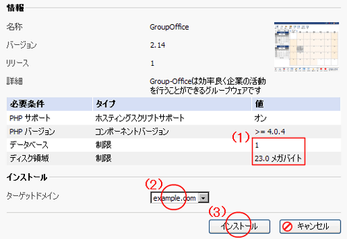(簡単インストール機能を利用してGroupOfficeを導入された場合別途利用料金が発生しますので、ご理解の上選択下さい)