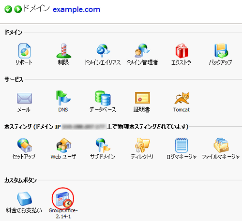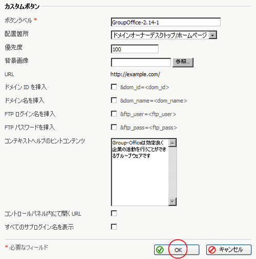 はい:PleskコントロールパネルにGroupOfficeへのアクセスボタンを設置します。