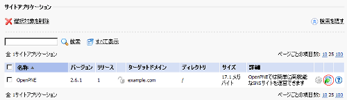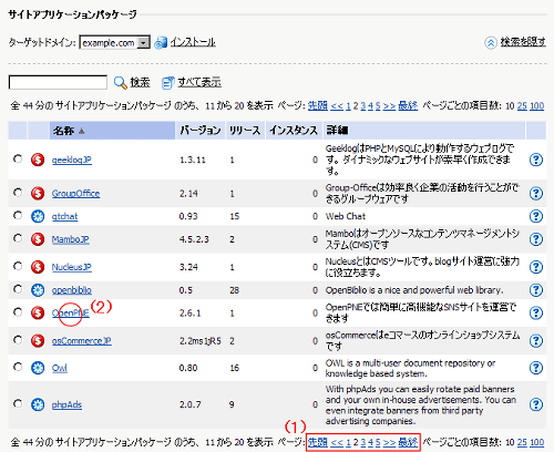 (1)を利用してサイトアプリケーションパッケージの名前がOpenPNEとある項目を探します。