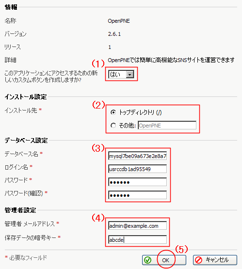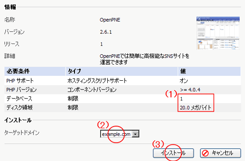 (簡単インストール機能を利用してOpenPNEを導入された場合別途利用料金が発生しますので、ご理解の上選択下さい)