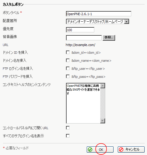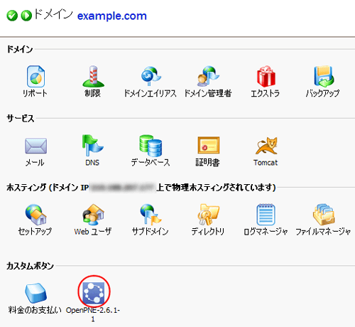 はい:PleskコントロールパネルにOpenPNEへのアクセスボタンを設置します。